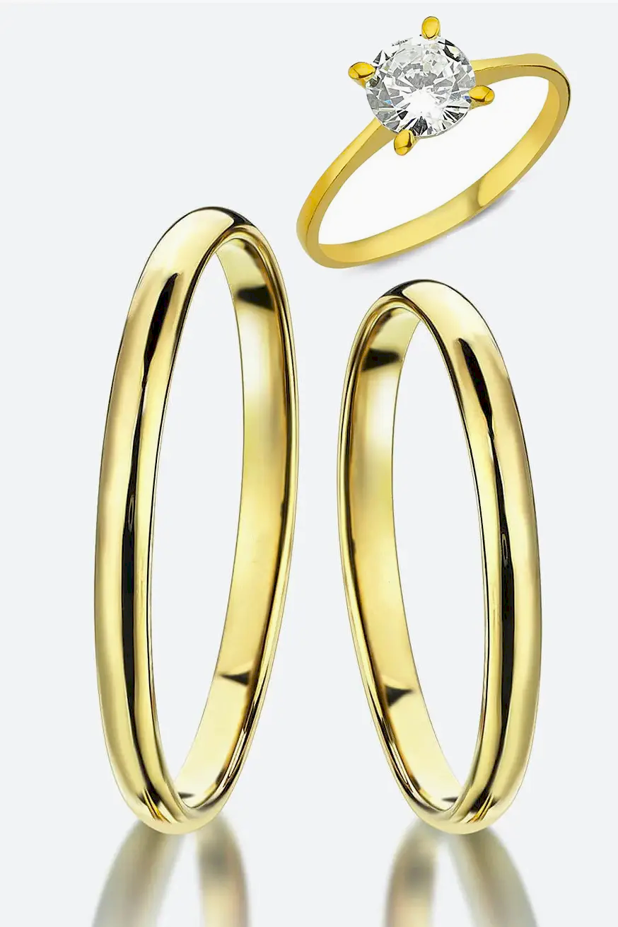 Toplam 3 adet yüzüktür. 1 erkek alyans, 1 kadın alyans, 1 kadın tektaş.