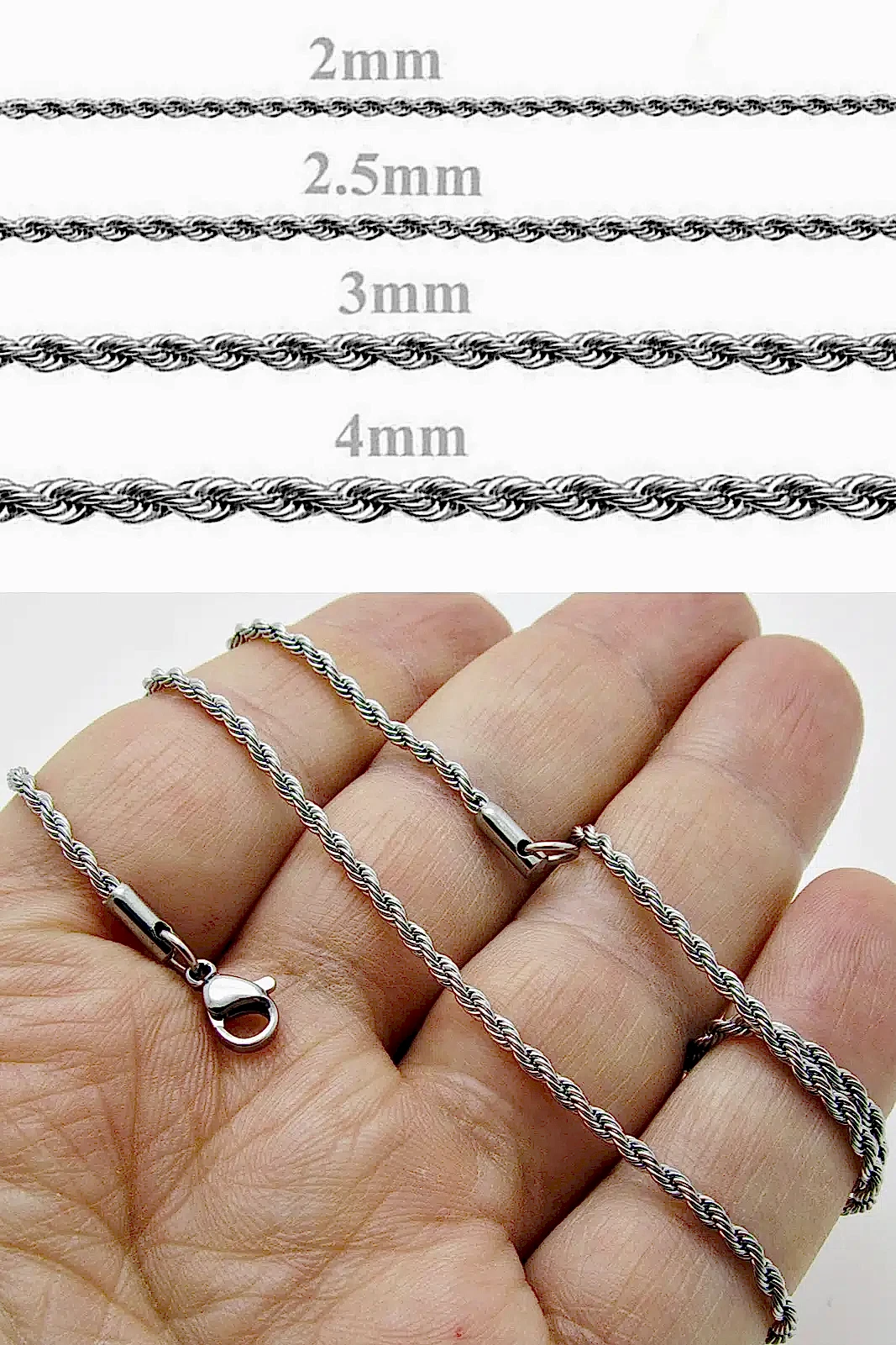 Paslanmaz Çelik Burgu Halat Zincir Kolye İnce Modeldir