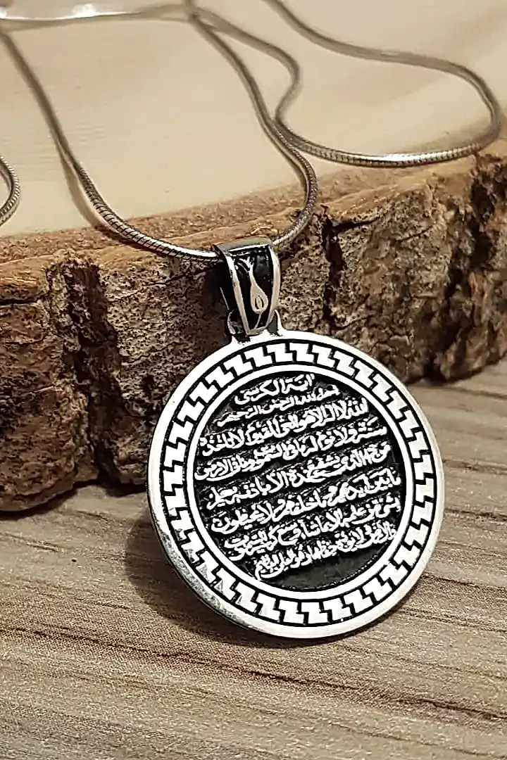925 AYAR GÜMÜŞ AYETEL KÜRSİ YAZILI KOLYE