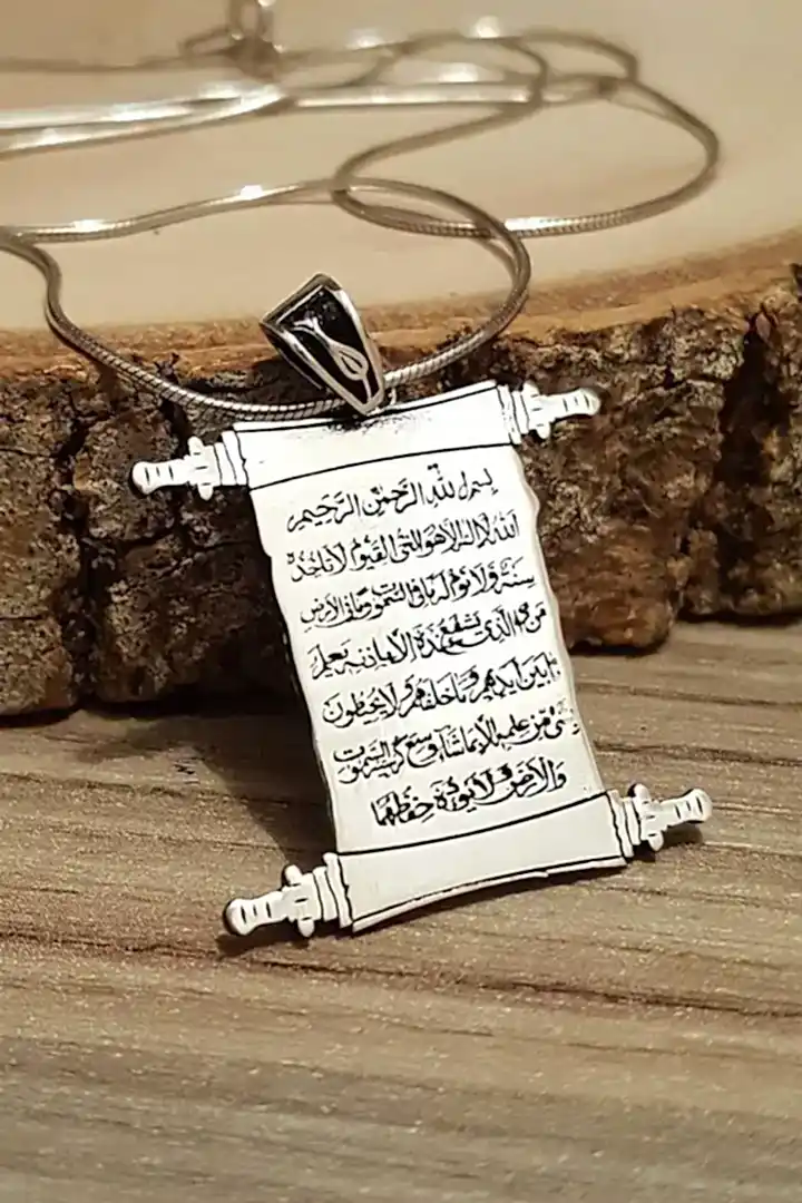 925 AYAR GÜMÜŞ AYETEL KÜRSİ YAZILI KOLYE