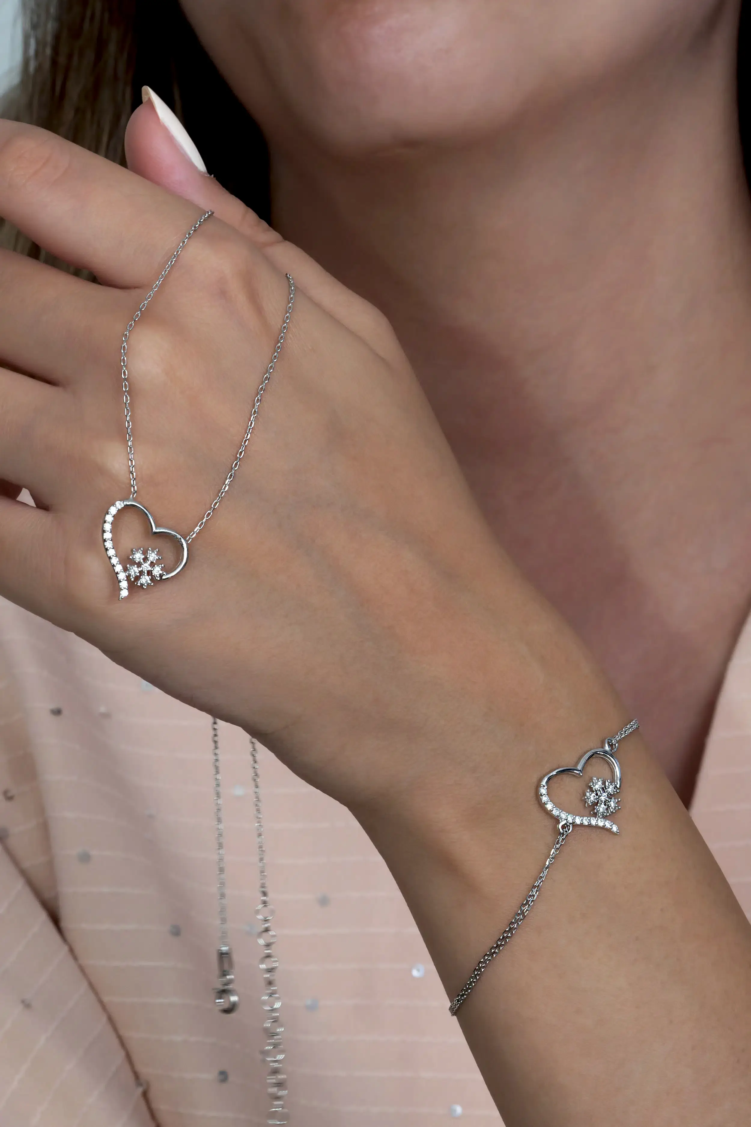 | Etiketler | Gümüş Kalp Kar Tanesi Kolye ve Bileklik Seti Sevgiliye Hediye wss09 |