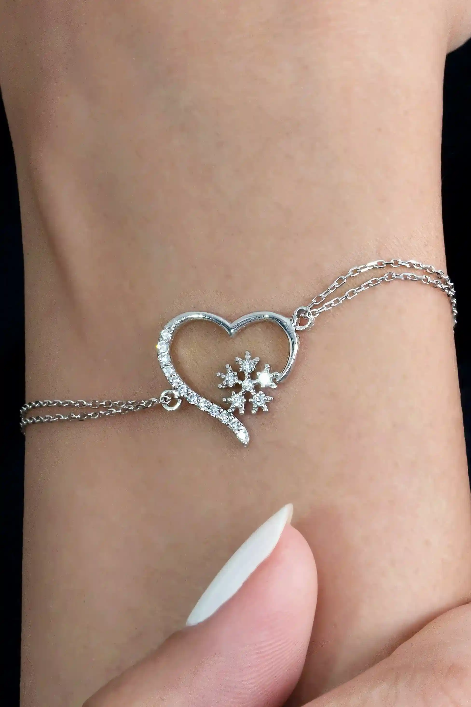 925 Ayar Gümüş Zirkon Taşlı Kalp Kartanesi Kadın Bileklik