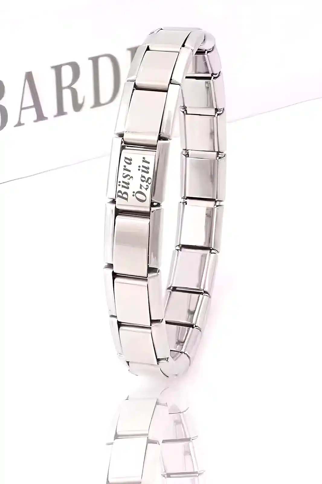 Bileklik fiyata dahildir, 18 parçadır, sadece 1 parçasına yazı yazılır. 18 cmdir. Eğer küçük geleceğini düşünüyorsanız ek tek veya 2 li 3 lü charmlarımızdan alabilirsiniz.