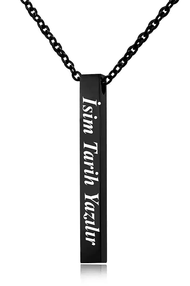 Kişiye Özel İsimli Tarih Yazılı Erkek Kadın Çubuk Bar Kolye eck25