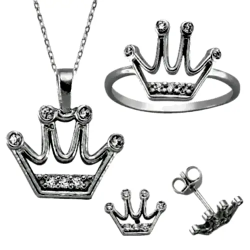 | Etiketler | Kral Tacı Taşlı Kolye Küpe Yüzük Bayan Üçlü Gümüş Set yst15 |